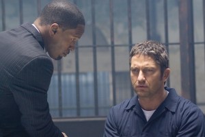 A vigilante revenge fantasy on crack, this gory crime thriller from the potent F. Gary Gray disposes of its repellant setup in less than five minutes: Home invasion by two drug-addled burglars leaves woman and girl dead and wounded husband-father (Gerard Butler) desperate for “justice.” Despite this man’s own eyewitness account of the break-in, there isn’t enough evidence to put both men on death row, so instead of risking an acquittal for both the go-getting D.A. (Jamie Foxx) makes a plea bargain that gives the scuzzier of the two only a few years in stir while the other fries. Feeling betrayed by “the system,” the husband goes underground and then rogue–ten years later. He tortures and dismembers the surviving perpetrator and then, after arrest, somehow orchestrates the murder of other people involved in the case, including the D.A.’s colleagues, from inside prison. Butler and Foxx play cinema stereotypes in extremis: the former is a brilliant engineer who, conveniently, designs killing machines for the government, while the latter is a cold, pragmatic workaholic. Both are jerks. (photo: LAC Films)