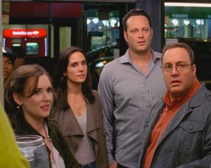 Vince Vaughn and Kevin James beat the post-boomer guy sensibility to death in this mirthless comedy about conflicting loyalties. When super salesman Ronny (Vaughn) learns firsthand that Geneva (Winona Ryder), the wife of his best friend and business partner, Nick (James), is having an affair, he despairs over whether or not he should tell him, especially after Geneva finds out he knows and threatens to reveal to Nick that she and Ronny were lovers before they met. Vaughn milks the discomfort this situation causes for all its worth as Ronny devises lame excuses for his actions to his would-be fiancee, Beth (Jennifer Connelly), while making foolish attempts to get the goods on Geneva and the bubble-headed boy toy (Channing Tatum) she’s shagging. Director Ron Howard betrays absolutely no interest in Allan Loeb’s incoherent script, allowing gross incongruities in plotting and motivation to stand, and giving neither Vaughn nor James any help with the excruciatingly static humor. Even Queen Latifah, as an automobile executive with a taste for over-literal double entendres, is on her own, and it’s not a pretty sight. (photo: Universal Pictures)