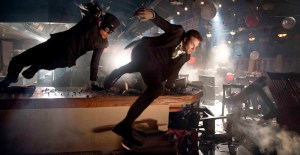 This 3-D piss take on the superhero genre posits a peculiar problem in that its director, Michel Gondry, has already made a movie that basically parodies all the genre’s conceits. In Be Kind Rewind Jack Black and Mos Def, playing anachronistic video store clerks (meaning the kind of video store that still offers tapes), recreate some of the blockbusters in their lineup themselves, with cut-rate effects and using an old VHS camcorder. The reported $120 million price tag for The Green Hornet places its budget below the norm for studio superhero movies but nonetheless clarifies its priorities. Regardless of Gondry’s more poetic visual touches and Seth Rogen‘s and Evan Goldberg’s goofy, who-gives-a-shit screenplay, Sony’s prerogatives stand: lots of destructive car chases and gunplay and martial arts fisticuffs. Rogen also plays the hero, debauched party boy Britt Reid, who takes over his father’s newspaper after the old man dies of a bee sting. Rogen doesn’t venture outside his usual comedic comfort zone, and for short spurts the movie humorously engages with Reid’s arrogant sense of white-guy privilege and its effect on his relationship with his “sidekick,” the infinitely more intelligent and resourceful Chinese car mechanic Kato (Taiwanese pop star Jay Chou). Bored and confused by the newspaper business, Reid latches on to Kato’s talents and proposes they become crime-fighting superheroes just because “it would be awesome.” As a comment on geek fandom this is actually better than Kick-Ass, but Rogen and Goldberg aren’t disciplined enough to take it or the racist implications to any place interesting. More significantly, they toss off the exposition, which has to do with an ambitious, blood-thirsty crime boss (Christoph Waltz) and a district attorney (David Harbour) who may have had Reid’s father (Tom Wilkinson) in his pocket. Gondry is forced to take up the storytelling slack, but even he seems uninterested, letting Waltz and Cameron Diaz, who plays another enabler, Reid’s scholarly secretary, flail around with dialogue that might have made more sense in a movie by Judd Apatow or Kevin Smith (who was attached to this movie during a previous incarnation). Gondry doesn’t really come into his own until the hugely violent final set piece, which involves the Green Hornet’s indestrucitble car, the Black Beauty, sheered in half but plowing through the offices of Reid’s newspaper, guns blazing all around it. It’s like something from one of Gael Garcia Bernal’s dreams in The Science of Sleep, another Gondry movie. But probably the most disconcerting aspect of The Green Hornet is its incoherence as a comedy. The scenarists’ lack of imagination is mainly revealed by their fall-back reliance on gay jokes (as in “we’re not”) and the tacit understanding that a dude like Rogen would never end up a girl like Diaz, regardless of what happened in Knocked Up.