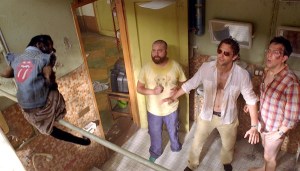 Having only been released in Japan last year–almost two years after it was first released in the United States–this guy comedy may strike locals as a bit lazy, which it very definitely is. What made the movie a worldwide hit had less to do with the adolescent humor, which was hit-and-miss, than with the clever structure: Three friends wake up after a drunken bachelor party without any memory of what happened the night before and the groom missing. They have to retrace their debauchery in order to relocate their comrade. The producers know this, which is why the sequel adheres to that structure to an almost anal degree. The trick is to set it all up without drawing attention to the fact. This time, it’s Stu (Ed Helms) who’s getting married. In the first movie the uptight dentist was living with a castrating bitch, which somehow explained his thing for hookers. In the meantime, he has obviously met his soulmate, a Thai woman (Jamie Chung) from a rich Bangkok family. It’s a plot point that allows the production to move to Thailand and thus work up the movie’s international appeal. It also allows them to exercise their own stereotypes about Asian family values and the seamy side of Bangkok, which is where Stu, carefree frat boy Phil (Bradley Cooper), and Asperger’s-addled Alan (Zack Galifianakis) wake up this time, despite Stu’s care in keeping away from any liquid that might contain “roofies.” This time the missing component is Stu’s soon-to-be brother-in-law, a 16-year-old destined for Stanford Medical School. Instead of a missing tooth, Stu is plagued by a tattoo, and instead of a baby there’s a chain-smoking monkey. And there are two McGuffins: a severed finger and Mr. Chow (Ken Jeong), the effeminate gangster who was so unceremoniously stuffed naked into his own car trunk in the first movie. Moreover, instead of abusive police, we get abusive silent monks. There is the same hostage-exchange gambit, the same get-me-to-the-church-on-time desperation, and the same regard for hackneyed male fallibility (“Forget? That’s what we do”). One could go out on a limb and say the danger factor was jacked up, but once you realize it’s the same movie as The Hangover you know it will end up the exact same way. The only difference is Mike Tyson’s involvement this time (as a pop culture signpost he doesn’t come off as badly as Billy Joel) and an extended cameo by Paul Giamatti who seems to be the only participant actually having fun. Even Galifianakis, whose comedic distinction is totally a function of his characters’ mental shortcomings, seems less vital in this one, though the morning-after hairstyle may be the only certifiably funny touch in the whole film.(Legendary Pictures & Warner Bros. Entertainment)