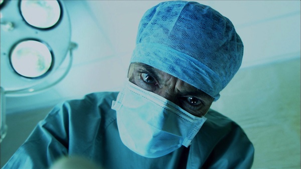 Already derided as the most repulsive movie ever made, Tom Six’s deliberately confrontational shocker arrives in Japan without a lot of the controversy. Here, it’s merely a bizarrely inventive horror tale, and taken as such it’s actually quite conventional. A creepy man sits in a car on a side road weeping over a picture showing three dogs. A trucker parks just ahead of him and gets out to relieve himself. The creepy man sneaks up behind him with a gun. This M.O. is elaborated on with the story of two typically giddy female American tourists (Ashley C. Williams, Ashlynn Yennie) who are in Germany looking to crash a party they’ve heard about. Naturally, they get lost in the darkest forest in Europe during a rain storm and, spooked by a pervert who pulls up beside them and pretends (or not) to jerk off, they wander through the woods until they come upon a house and knock on the door. Who should live there but the creepy guy, who turns out to be Dr. Heiter, a surgeon once renowned for separating conjoined twins, though since retiring he’s found a new calling. The girls meet the same fate as the trucker, which wasn’t death but sedation, and when they wake up they’re tied to hospital beds in the basement, where the doctor explains what will happen to them. They scream until they pass out. By this point, what with the sequel, The Human Millipede (Final Sequence), already out in Europe, there’s no point in hiding what this operation entails, but in any case the idea is more horrifying than what Six delivers in the way of visuals. The horror is literally of a fate worse than death, even if the Dutch director and his frightfully effective lead actor demonstrate a streak of macabre humor a mile wide. When the “match” proves useless in the case of the trucker, he’s dispatched summarily and replaced with another tourist, this one of Japanese origin who speaks nothing but his native language. After the operation is finished, and the doctor’s new “pet” is “complete,” the Japanese tourist is the only victim who can verbalize his anger and frustration, while the two American women can only whimper impotently. Six obviously means to have fun with national stereotypes, in particularly the Mengele-like disregard for human suffering exhibited by the German doctor (“I hate human beings”), but despite the frightfully grotesque imagination on display, the cliches keep coming. A pair of cops show up at the doctor’s door asking about the missing Americans and they get suspicious. Mayhem ensues, resulting in a predictable ending to the story but a totally unpredictable fate for the “pet.” Six just can’t help giving the knife an extra turn. Roger Ebert famously refused to give a rating to The Human Centipede, calling it so disturbing that it made it impossible to judge, but as a pure film it’s dramatically coherent and visually impressive.