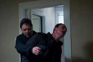 Director Paul Haggis, famous for creating the Oscar-winner Crash and writing the screenplay for Million Dollar Baby, tones down the hot-blooded social commentary for a fairly straightforward suspense flick, albeit one that is based on a French action movie, which sounds desperate on the surface. Russell Crowe plays John Brennan, a college English instructor whose wife, Lara (Elizabeth Banks), is sentenced to life for the murder of her boss, a crime that is never clearly explained (motive is inter-office politics?) because the audience isrequired to wonder throughout the running time whether or not she really did it. It’s a fatuous plot device meant to increase Brennan’s air of fidelity bordering on insanity. He never doubts Lara’s innocence, and after three years of exhausting every legal recourse and Lara’s suicide attempt in stir, he decides on the only logical solution: He will break her out. Such preposterousness is hardly an obstacle for a well-orchestrated action movie, and I imagine the French original, Pour Elle, which I didn’t see, didn’t bother with making it all seem credible, but Haggis is too self-consciously a “quality” director, and his attempt to bolster the story’s relatability with excruciating details of how a milquetoast like Brennan learns to be a cold-blooded criminal provides its own measure of discomfort above and beyond what you might feel for his protagonist. Brennan interviews an ex-con (Liam Neeson) who wrote a book about his own escape, and then surfs the net for any intelligence about prison procedure and criminal technique, such as breaking into automobiles and producing “bump keys.” In the meantime, he has to raise a son who is persecuted at school for having a murderer mom and deal with parents who suspect something is afoot but can’t bring themselves to articulate it. Then there’s Lara, who has to be kept in the dark about the breakout until it’s actually happening. All of these elements are suspenseful in and of themselves, and Haggis wisely avoids his usual sermonizing tone, focusing intently on Brennan’s increasingly obsessed personality, which Crowe embodies handily; so handily, in fact, that he can deliver Haggis’s late-inning surprises without raising so much as a cackle of derision. Crowe may be too successful, in fact, since his character’s lack of cool makes it difficult to believe he would rob a drug den full of armed thugs for the money he needs for his enterprise. This is a guy, after all, who in a previous scene was easily screwed over by a fake passport dealer. The learning curve is long for English teachers who endeavor to break the law, Haggis seems to say, but some things just automatically bugger the imagination.(photo: Lions Gate Films Inc.)