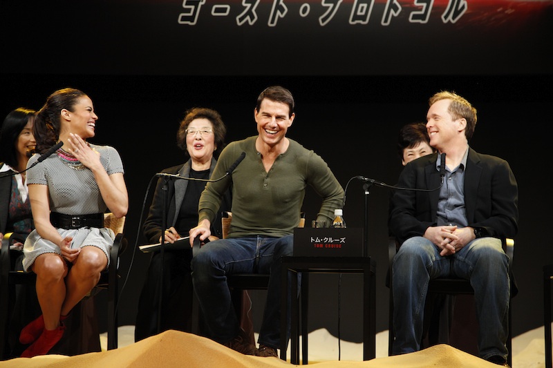 Entertain me: Patton, Toda, Cruise, Bird at Mission Impossible Ghost Protocol press conference, Ritz Carlton Hotel, Tokyo, Dec. 1, 2011 (photo Lucian Capellaro/Paramount Pictures Int'l)