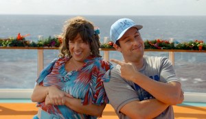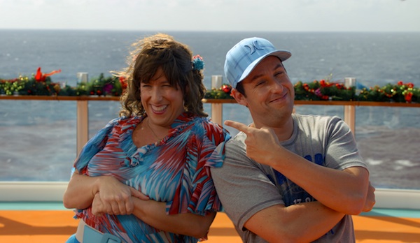 Some people with longer, more flexible memories may see the new Adam Sandler comedy as a tribute to Jerry Lewis, the comedian whose film career Sandler’s most closely resembles. Of course, the same people would likely argue that Sandler doesn’t deserve to hold Lewis’s false buck teeth, and not just because he doesn’t direct. The problem with this sort of critical response is that it overstates the value of Lewis’s movies, but the French would obviously argue otherwise. In any event, by playing a dual role in Jack and Jill, one of which is a woman, Sandler seems less intent on following Jerry’s path than in trying to maintain a streak of low-brow hits by any means necessary. Sandler is obviously an intelligent guy, but the conception and execution of this movie is so lazy that you wonder exactly how sure he is of the loyalty of his audience (apparently pretty sure, since the movie has already made more than $70 million in the U.S.). Aside from the copious poop and fart jokes, the two most conspicuously Sandleresque features of the movie are the blatant product placements and the cameos of screen stars, both small (John McEnroe, Regis Philbin) and big (Johnny Depp, Katie Holmes). The biggest in the latter category is Al Pacino, whose second billing status is justified by the amount of screen time he gets. Pacino plays himself as an actor who does Shakespeare in Los Angeles with Bruce Jenner and thus is presented as somebody who will do anything for money. Sandler’s Jack is an advertising executive trying to corral Pacino for a Dunkin’ Donuts commercial and not having much luck until Pacino accidentally meets Jack’s twin sister Jill, who is visiting her brother in L.A. for the holidays and with her spinster neediness is driving him crazy. Pacino and Jill bond over their mutual Bronx upbringing, but Jill, despite her lack of romantic prospects (we just saw her get dumped by an online date), resists the movie star’s come-ons for no real reason except to make her brother’s life even more difficult. Discounting the fact that Jill is overbearing, it’s never exactly clear why Jack despises her so much, especially since everyone else finds her a delight. If one has to make comparisons, Jerry Lewis’s female impersonations, not to mention Peter Sellers’, were so unbelievable they existed in their own strange dimension. Sandler’s Jill is just your annoying cousin dialed up to eleven, and placed in the kind of privileged middle class milieu that has become Sandler’s chosen cinematic world, she’s a chore to watch. What does Pacino see in her? Nothing, apparently, except a big paycheck. I’m sure he doesn’t think he’ll turn Sandler’s fans onto Shakespeare.