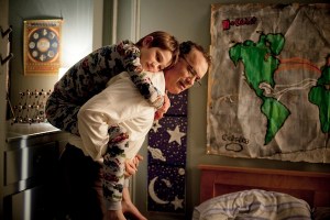 Stephen Daldry turns his literary eye to the sophomore novel by Jonathan Safran Foer, about a nine-year-old boy desperately clinging to the memory of his father who died in the World Trade Center on 9/11. It’s clear from the start that Oscar (Thomas Horn) is developmentally different—either hyperactive or Aspergers-addled (he admits at one point he was “tested, but the results were inconclusive”)—and his father (Tom Hanks), a jeweler, challenged him with games to help him overcome his fear of the outside world. Shattered at his lost, Oscar pushes away his mother (Sandra Bullock) and devotes himself to a treasure hunt involving a mysterious key his father left behind. Foer’s idea is simple enough—the treasure hunt brings Oscar out of his mourning and reveals to him a world of equally troubled souls—but Daldry’s stylized treatment overcomplicates it, especially the tangential matter of the old mute man (Max Von Sydow) who accompanies Oscar on his search throughout New York City, an endeavor whose logistics just seem impossible, even for a mensch like Oscar. (photo: Warner Bros. Entertainment)