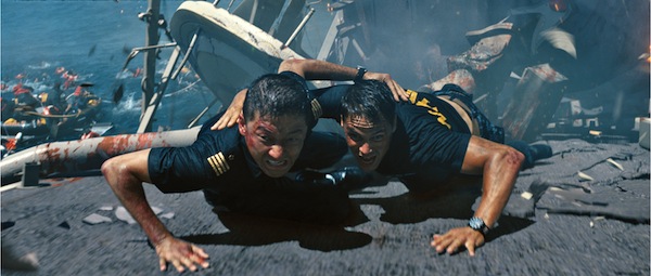 This year’s pugnacious-aliens-vs-American-military blockbuster comes a little earlier than usual and broadens the roster of good guys to include…Japan’s Maritime Self-Defense Forces? Talk about suspending disbelief. The malignant ETs apparently trace back one of those “Is anyone out there?” messages that hopeful scientists send out into the void. These bring their own sea fortresses, complete with steel-cutting orbs that decimate Hong Kong in the time it takes to say “real estate bubble.” Based on the board game, the movie makes room for more than a few promo opportunities, though certainly the most risible is bringing the USS Missouri out of mothballs, complete with elderly crew, to fight alongside the very Japanese navy that sunk it the first time. Taylor Kitsch, who is now on the adjoining screen in the multiplex hamming it up as John Carter, finds his element, so check-cashers like Tadanobu Asano, Liam Neeson, and Alexander Skarsgard don’t have to. As for Rihanna, she finally gets to be the tough bitch with the big gun. I hope she likes her uniform. (photo: Universal Studios)
