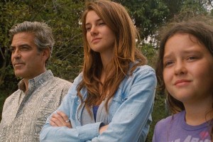 This reportedly faithful adaptation of a novel by Kaui Hart Hemmings provides a perfect meeting place for two of Hollywood’s great popular iconoclasts, George Clooney and Alexander Payne, even if the trajectories of their respective careers are moving in opposite directions. With The Descendants, Clooney finally gets a role that doesn’t take advantage of his charm or good looks but in fact confounds them; while Payne gets a property that doesn’t take advantage of his capacity for edginess. Though he wrote the script, and won an Oscar for it, the source material is soft and contains no characters who might complicate the viewer’s feelings; except maybe the wife of Clooney’s Matt King, but she spends the entire movie in a coma. The accident that caused it occurred before the movie’s action takes place, so when we meet real estate lawyer Matt he’s already morose and in voiceover tries to dispel the viewer’s knee-jerk reaction to the beauty of the setting, which is Hawaii, a state of mind that offers no comfort to Matt. “Paradise can go fuck itself,” he says—to us rather than to himself. The reality of his wife’s condition brings home the parallel reality that Matt has not had enough parental involvement in his two daughters’ lives, and as he tries to assert his paternal authority he finds out that his wife was having an affair before the accident. Compounding the humiliation is the realization that his difficult teenage daughter, Alexandra (Shailene Woodley), knew of this affair and fought with her mother over it; which doesn’t mean she sympathizes with her father. If anything, she resents him even more for being a chump, and it’s Matt’s prevailing over his chump-ness that constitutes the movie’s dramatic development: confronting the lover, coming to terms with his own domestic inadequacies, and, in the end, deciding on his legacy, because while all this melodrama is taking place his many relatives are assembling to liquidate the family’s vast and valuable land holdings, of which Matt is the trustee. Payne’s strong suit is the liberal dispensation of comic elements throughout this often painful story, in particular Alexandra’s slacker pal Sid (Nick Krause), who tags along on even the most traumatic errand, delivering inane bits of wisdom and inducing fights with only his laid-back attitude. But even Sid eventually toes the tonal line and makes a little speech about his dysfunctional background, because in a movie like this everyone has to hurt. Clooney deports himself admirably in his big emotional scene and gets us rooting for Matt, though he’s too rich (by implication) and comfortable to evoke genuine sympathy. Maybe that’s a class-ist way to look at the situation, but Payne would not have let such a huge subtextual consideration slide in the past.(photo: Twentieth Century Fox)