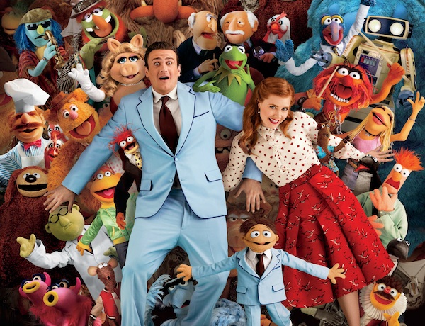 Transparently put together to reposition Jim Henson’s beloved stock company of cloth beings as a Disney property, this generically titled reboot movie benefits from a certain generational alignment. The actors and filmmakers involved all grew up when the Muppets were the adolescent equivalent of the Not Ready For Prime Time Players, and thus this is more than just an exercise in nostalgia, it’s an effort of enthusiasm. Jason Segel, who co-wrote the script, is one such fan, and he stars as Gary, a nice, pastel-wearing functionary living in Smalltown USA with his brother Walter, who looks suspiciously like a Muppet and, in fact, grew up adoring the iconic TV show. When Gary and his well-scrubbed fiancee, Mary (Amy Adams), go on vacation to Los Angeles, Walter comes along to visit the studio where his favorite show was produced, but it’s now a broken-down tourist attraction. Even worse, a greedy tycoon named Tex Richman (Chris Cooper) is planning on buying the property to get at the oil that is supposedly underneath it, so Walter, Gary, and Mary conspire to contact the old Muppet crew to save the studio by, you guessed it, putting on a show to raise enough money to buy it back. This entails locating all the principals and persuading them to come out of retirement. Kermit is holed up, Sunset Boulevard-style, in his moldering Bel Air mansion by himself. Miss Piggy is running French Vogue. Fozzy the Beat heads a Muppet cover band in Vegas. And Gonzo runs a plumbing supply company. Segel nails the mix of childish obviousness and adult themes that made the original show’s humor so indelible, and the fourth-wall-breaking jokes never become as tiresome as you think they might. But the real joy of the movie is something unexpected: the songs by Bret McKenzie, which range all over the pop spectrum and never fail to use their tropes to hilarious effect. When Cooper raps through “Let’s Talk About Me” or Segal and Walter duet on the faux-poignant “Man or Muppet,” the movie enters the realm of the delightfully absurd without losing its balance. One almost wished Jack Black had gotten a number, since his special cameo as himself—kidnapped to provide a star for the telethon—is surprisingly listless. It’s impossible to do all the Muppets justice, even in a full-length feature, but it feels strange to leave the theater without one Miss Piggy line lodged in the memory. And Adams seems to have been cast simply for her capacity to be bubbly and not for her considerable comedic skills. It’s as if Segel were afraid the humans would upstage the puppets. He may be a good and loyal fan, but he underestimates his heroes. (photo: Disney Enterprises Inc.)