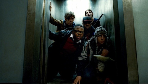 If you have to see only one alien invasion movie this summer, see Attack the Block. Though not a masterpiece, it’s a movie that juxtaposes gritty social realism with farfetched horror-science fiction in a way that satisfies both sides of the entertainment divide. The opening scene may initially repel viewers, since it presents the ostensible heroes of the story in a frightfully bad light. A young woman walks from a tube station to her apartment in a poor South London neighborhood at night and is soon surrounded by hoodie-wearing teens who threaten her with knives and take her purse. It’s a scary sequence, but rather than follow the viewer’s sympathies and stick with the woman, director Joe Cornish follows the gang members as they roll off on their bikes and are themselves attacked by a streaking ball of flame. Considering what we’ve witnessed it’s as close to a purely visual non sequitur as you’re likely to get in a movie; but in a way it isn’t, because Cornish dives right into the sci-fi story without changing gears or losing the urban tone he’s established. When the flame disgorges a disgusting creature, ringleader Moses (John Boyega) snuffs the slimy ET and, puffed up with victory, carries it around like a trophy. That act of bravado will soon come back to bite the gang in their collective ass and lay waste to the dank, graffiti-covered public housing estate where they live with whatever family members haven’t succumbed to drugs or fled their responsibilities. As we get to know the gang, we see their predicament and the dead-end lives they lead, and even when the young woman, Sam (Jodie Whittaker), reappears with police in tow to arrest her muggers, they save her from the aliens; which doesn’t redeem them in her eyes but does force her to consider their circumstances a little more closely. This is all running subtext, because on the surface Attack the Block is a fast-moving, suspenseful monster movie of the stalk-and-grab type, and the grimy, shadowy housing block provides the perfect setting for an invasion of aliens who are as inky black as a starless night (only their nasty teeth are visible). Along the way, we meet other denizens of the neighborhood, including its top gangsta (Jumayn Hunter), whose face-to-face encounter with the aliens doesn’t make him any less tolerant of these upstart punks; a loser white pothead (Luke Treadaway) whose book-learning comes in handy; and the estate’s local drug dealer (Nick Frost). But it’s Moses’s crew of barely adolescents who steal the movie, an Our Gang collection of wiseacre brats whose unavoidable immersion in pop culture has prepared them for this apocalypse without their knowing it. (photo: Studio Canal/UK Film Council/Channel Four TV Corp.)
