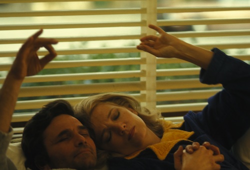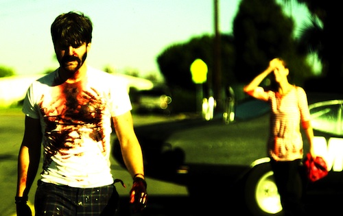 Whether you accept Evan Glodell’s super-saturated indie nightmare fantasy as a violent boys-with-toys B-movie or a cautionary tale of young love gone terribly wrong, you will likely spend the greater part of its running time waiting for the other shoe to drop. Glodell plays Woodrow, a geeky mechanic who, with his BFF Aiden (Tyler Dawson), has moved to Southern California to build the perfect muscle car AND the perfect flame-thrower. The purposes of these two goals is never made clear, though the pair’s alcohol-soaked reveries on Mad Max tell you where they originated. Along the way to his destructo ideal, Woodrow falls for Milly (Jessie Wiseman), a damaged young woman whose fickle emotions in the long run give him reason to act out these pent-up impulses, though as the film gets seriously weird it becomes difficult to separate the narrative’s “reality” from whatever it is Glodell wants to show off in terms of his cinematic capabilities. In the end, there isn’t enough pyrotechnical spectacle to satisfy genuine gearheads, and their girlfriends will immediately call bullshit on the love story. (photo: Bellflowerthemovie LLC)