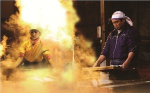 This low-budget, locally produced fantasy can’t quite square its didactic commercial purposes with its need to entertain. A family of traditional papermakers in rural Fukui Prefecture guards a forest passage to a warren of tunnels, each of which connects to a different era in the past, but when an underhanded developer gets wind of the power spot he wonders how to exploit it. We wonder, too, since his nefarious scheming doesn’t have a logical end; it’s just nefarious for the sake of being nefarious. The writing is strictly grade school, involving time-slipping samurai, paper swatches with magical restorative powers, and a confusing flashback structure that borrows from Stand By Me and countless anime. It’s obvious that the producers want to promote the charms of the region, but the history of the Fukui Clan and the explanation of local crafts are sketchy. Most of the budget probably went to the recognizable cast and the bit of CG that highlights the big finish. Wouldn’t a nice documentary about either of these aspects been more effective, not to mention cheaper? In Japanese. (photo: Hesomori Seisaku Iinkai)