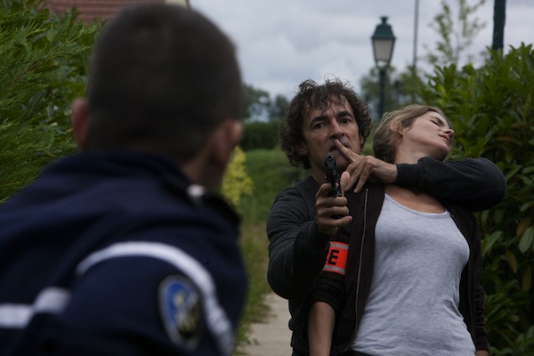 It’s tough to decide if this French action thriller is better than expected because French action thrillers are getting better or American action thrillers are getting worse. Imprisoned holdup guy Franck (Albert Dupontel) won’t tell his former partner or his wife where he stashed the loot, but he lets slip a revealing remark to his seemingly milquetoast cellmate, Maurel (Stephane Debac), who is released after his molestation conviction is overturned. Later, an ex-cop (Sergi Lopez) visits Franck to interview him about Maurel, whom the cop suspects of being a serial killer. Clued in that Maurel may be after his family and his nest egg, Franck escapes from the joint, so while he’s pursuing Maurel, a dogged police detective (Alice Taglioni) is pursuing Franck. Director Eric Valette does a fine job of keeping these two chase vectors distinct yet parallel, and if Franck’s ability to withstand gunshots, beatings, and leaps from moving cars seems superhuman, Dupontel, with his huge, bulging eyes and preternaturally mean scowl, gives a convincing portrait of someone who is not of this world. In French. (photo: Brio Films-Studiocanal-TF1 Films Prod.)