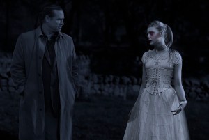 Since coming out of retirement about ten years ago, Francis Ford Coppola has hoed his own row, so to speak, not only ignoring studios or well-heeled indie production companies but eschewing the sort of obsessive integrity that was the hallmark of his greatest work. Though there’s craft aplenty in this curious bit of gothic camp, it’s at the service of nothing significant, which could be a point worth savoring if Twixt were scary, transgressive, or funny. Val Kilmer enters reluctantly into the movie’s spirit of who-gives-a-shit with a batty performance as Hall Baltimore, an earnest writer of occult potboilers desperately trying to come up with an idea for his next novel as he half-heartedly embarks on a book tour for his current one. In one small town he hears about a murder that occurred years ago and decides it may be grist for the pulp mill. The story involves a girl, Virginia (Elle Fanning), who became a vampire and appears to Baltimore in alcohol-fueled dreams, helping him to solve the mystery. Also on hand to lend his expertise is the spirit of Edgar Allen Poe (Ben Chaplin), who is treated with such reverence you’d think he was some sort of religious icon. The idea that Baltimore is using the mystery to work through his unexamined feelings about his own daughter, who died in an accident, is handled with greater sensitivity by Kilmer than by Coppola, who doesn’t betray much faith in his ability to make anything compelling out of the story. (Second thoughts? Coppola’s own son died under similar circumstances) When shown at overseas festivals Twixt included some perfunctory 3D sequences that have since been removed, thus implying that the director was making it up as he went along. Previous reviewers have ventured that he might have intended the movie to be an homage to his first mentor, Roger Corman, but only the scenes with Bruce Dern’s opportunistic town sheriff convey the sort of hyperbolic storytelling that was so central to the American International Pictures style. However, there are enough wacky asides, most of them involving demented children, to keep the movie entertaining if not exactly enthralling. For it to draw the viewer in it would need to stick to at least one of its storylines with a measure of conviction. Only Kilmer seems wrapped up the movie, as if he felt the role might actually have substance if he dug deep enough into its contradictions. It might be interesting to see what Coppola left out of this mongrel movie; meaning it may be salvageable at some point in the future. I haven’t forgotten that Apocalypse Now was also mostly incoherent when it was first released. (photo: Zoetrope Corp.)