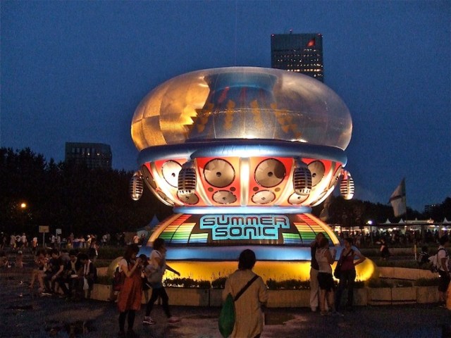 The indie acts at SS tend to be the main draws for me, especially if they’ve never been to Japan before. If anything, I like to watch the interaction between artist and audience, since many of the former often develop certain ideas about what the latter are going to be like, and though they all express pleasant surprise at the reaction, I think the reaction is sincere, mainly because I think Japanese concertgoers are sincere, or, at least, more so than Americans, who respond as much to the fact that they’re at a concert as they do to the artist. When a musician tells me that he appreciates how quiet and respectful Japanese audiences can be, I think to myself: It’s probably because they’re bored. Festivals bring out this honesty more starkly, because people are free to come and go. (The exception at SS is the Marine Stage, whose crowd control exigencies are so Draconian one has to make an effort to actually get up and leave, especially if you’re down on the field.)