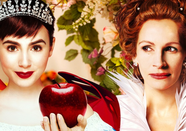 With each movie the director originally called Tarsem adds a new name and loses his unique facility for CG. The Cell and The Fall were interior movies, while The Immortals was his attempt, as Tarsem Singh, to bring his aesthetic to the blockbuster, which didn’t need it. This comic take on “Snow White,” with Julia Roberts as a wisecracking evil queen, could use more of Tarsem Singh Dhandwar’s old visual flair because the story and jokes are so flat. Roberts is in it, so the queen is the main character, with Snow White (Lily Collins), whose eyebrows are a special effect unto themselves, simply adding virtuous ballast. In the middle is an outlander prince (Armie Hammer) whom the queen wishes to bag in order to solve her cash flow problems. He is rendered as a dog to foil SW’s own romantic designs, and the 7 dwarfs provide further humorous stimulation with “short” gags. It’s far from a Grimm tale but it isn’t that different in tone from late Disney—more Aladdin than SN&7D, but not nearly as funny. (photo: Relativity Media LLC)