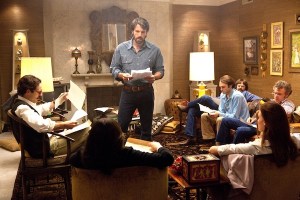 At the beginning of Ben Affleck’s recreation of a recently declassified CIA scheme to spirit Americans out of Iran during the embassy hostage crisis of 1979 there is a neat summation of the background of the crisis that takes in thirty years of Iranian history. In a sense, it’s the movie’s most satisfying representation of its theme. In less than ten minutes you get a balanced history (the Shah’s crimes are not glossed over) and some very convincing reenactments of the violent demonstrations that took place outside the U.S. embassy. These scenes also set the dramatic pace of the film, which is fast, succinct, and efficient to a fault. During the chaos that envelopes the embassy, six staffers sneak out and somehow make it to the home of the Canadian ambassador (Victor Garber), where they lie low for many months, unbeknownst to the new Revolutionary administration, which is demanding the return of the ill shah from the U.S. in return for the rest of the hostages. Back in Washington, the CIA ponders several possible escape scenarios involving bicycles and English teachers, but all are shot down by Tony Mendez (Affleck), a “exfiltration expert” who for reasons not entirely clear isn’t in the agency’s good graces at the moment. His plan, to mount a mock movie production involving Canadian money and have the six pose as Canadian tech people scouting locations for a science fiction movie, is first dismissed as ridiculous, but once he enlists the services of a well-known Hollywood makeup artist (John Goodman) and an old-school studio producer (Alan Arkin), he’s able to make his case, and eventually the agency gives its grudging approval. Given the premise, a certain amount of navel-gazing is inevitable, not to mention some really good jokes at the expense of the movie industry and Affleck’s rep as a filmmaker (“any one can direct a movie, even a rhesus monkey”). The movie actually loses something vital when it moves full-time to Teheran and the scheme is put in motion. Affleck is quite capable with the suspense elements and makes clear the stakes involved—if the Iranian authorities catch these Americans with their fake Canadian passports, they can be summarily executed as spies. His calculations are also all too clear, and the simmer-to-a-boil development of the plan can’t help but seem stagey. Nevertheless, Argo is a sufficiently adult film. In fact, it’s the kind of quality product that, had it been released during the period it depicts, might have been both a box office hit and an Oscar contender. It’s also something of a fairy tale in that it advances the idea that there’s nothing movie people can’t do when they put their minds to it, but that’s a credo that applies as much to Transformers as it does to Taxi Driver. (photo: Warner Bros. Entertainment)
