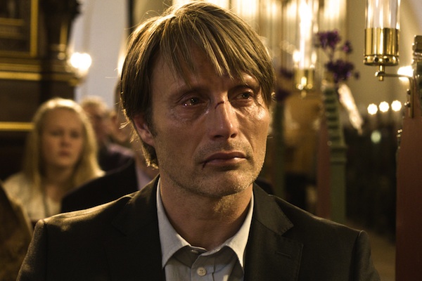 Danish cinema always deals in discomfiting candor, and Thomas Vinterberg’s latest brings a deeper significance to the somewhat hackneyed innocent-man-accused theme. Middle-aged Lukas (Mads Mikkelsen), shell-shocked by a difficult divorce and loss of his teaching job, regains his equilibrium working at a small town kindergarten where he strikes up a romance with a foreign co-worker. One of his pre-school charges develops a crush on him and when he gently rebuffs her she translates her inchoate resentment into a lie that effectively turns Lukas into a monster in the eyes of the community. At first helpless because he doesn’t understand the charge against him or even who made it, he fights back after the persecution turns deadly, albeit by getting drunk and making a scene in church. Some of the drama might seem stagey if not for the natural lighting and free-form direction, and despite the reflexive treatment of small-town small-mindedness the development of the scandal is credibly mapped out, especially when the child in question recants a story even she didn’t fully understand. Kids say the damnedest things. In Danish. (photo: Zentropa Entertainments 19 and Zentropa International Sweden)
