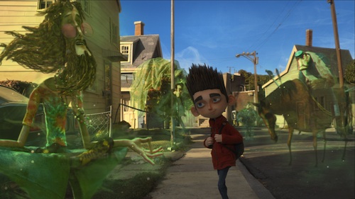 The subtle charms of this 3D stop-action animated feature may be lost on moviegoers who understandably have had it up to here with horror tropes, regardless of how they’re presented. The hero, a middle school boy who sees dead people, is bullied for his gift and even grounded by his parents when his spooky capability gets out of hand. He lives in a suburban community whose only claim to posterity is being the setting of a colonial era witch trial, and what his neighbors accept as a quaint tradition Norman (Kodi Smit-McPhee) suffers through as the only mortal being in town who undertands the feelings of one of those witches. This knowledge provides him with an unavoidable mission to prove his courage, but such Disneyfied cliches are fortunately downplayed in favor of a more imaginative kid-group dynamic. In his determination to save Blithe Hollow from a zombie invasion Norman the misfit recruits his vain older sister (Anna Kendrick), a dumb bully (Christopher Mintz-Plasse), and a somewhat compromised jock (Casey Affleck), all winning comic inventions. (photo: Universal Studios)
