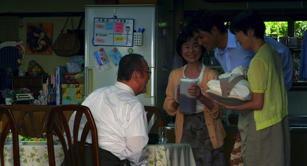 Masahiro Kobayashi’s brand of hyperventilating cinema isn’t tempered in any way by his decision to limit the interactions to two people in his latest film. Tatsuya Nakadai plays the father and Kazuki Kitamura the son in this mostly black-and-white family drama whose entire mise en scene is confined to two rooms. The father, diagnosed with cancer shortly after his wife dies, decides to forego treatment and locks himself away in his room to die in peace as his son, already distraught because his own wife and daughter are missing in the aftermath of the Tohoku disaster, tries to talk him into coming out. Though the title at first refers to 311, it is meant to represent the loss of national nerve in the face of an uncertain future, but Kobayashi’s depiction of desperation is all on the surface, as father and son rail at each other in mutual self-pity without ever getting at the root of their respective existential dilemmas. When the father proposes that the son not report his death so that he can collect his pension, Kobayashi betrays his lack of original thinking on the topic by stealing a sordid idea from tabloid headlines and then sidestepping the socioeconomic roots of the example he uses. Instead, he reduces Japan’s general malaise to purely psychological and spiritual causes. But it’s just one family’s tragedy, not Japan’s, and as such still overwrought. In Japanese. (photo: Monkey Town Prod.)