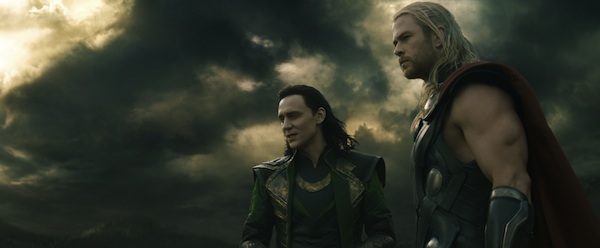 Though it may sound like a trivial distinction considering the plethora of superhero movies, but so far the Thor franchise has hewed closest to the spirit of Marvel Comics in its heyday, combining heavy-handed, even monumental dramaturgy with an appreciation of dumb adolescent humor. Though Spider-Man has always been the Marvel comic par excellence, it’s an exception, what with its Freudian focus on Peter Parker’s neuroses. Most Marvel storylines contemplate the God complex in superheroes, and since Thor really is a god it scratches that itch boys develop for larger-than-life characters. And Chris Hemsworth has proven himself equal to the task, what with those booming chest tones and a proven ability to strut and preen. Since last we saw the Norse god of thunder he’s been “keeping peace in the Nine Realms,” which doesn’t need further explication because it sounds so great, but Alan Taylor gives us a taste by showing Thor vanquishing a giant single-handed and thus bringing an entire enemy people to its knees. The viewer can be forgiven for thinking that this sequence has more to do with Tolkien than Marvel, but this is a Marvel movie, not a Marvel comic, and the difference is important, though the “dark force” on which the plot hinges borrows from both media equally. This force, called “ether,” has been kept under wraps for millennia in a separate dimension, and who happens to stumble upon it during her astrophysics experiment but Jane Foster (Natalie Portman), Thor’s earthling squeeze, whom the hammer-tosser has jilted in the meantime—too busy with the Nine Realms, you know. When Jane lets the ether free, it also frees an evil elf (Christopher Eccleston) who had been imprisoned by Thor’s father, Odin (Anthony Hopkins). Thor has no choice but to solicit the aid of his brother, Loki (Tom Hiddleston), who is also imprisoned. Thor tries to speak to Loki’s better nature, and for most of the film, the two siblings move back-and-forth between a violent rivalry and a brotherly alliance. If it ain’t exactly the stuff of Shakespeare, it definitely makes for some rousing fight scenes, and for once the bombast of the 3D CG effects matches the heroic cast of the story it serves. It’s supposed to make you feel like an insignificant mortal, but Thor remains down-to-earth, and not just when he rekindles his flame for Jane, who is brought to Asgard, the home of the Gods, because her discovery puts her in cosmic danger, and there she gets to do Norse cosplay, which is where the adolescent humor comes in. As it turns out, Jane is much better suited for Asgard than Thor was for Earth in the first movie. Girls are more adaptable than gods. (photo: MVLFFLLC & (c) 2013 Marvel)