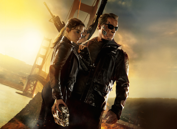 At this point in the Terminator series, the world as we know it has ended so many times and in so many different ways that you wonder why the producers don’t just pull a Spider-Man on the franchise and reboot the whole thing with a straight remake of the original film. Of course, the answer is obvious. Now that Arnold Schwarzenegger is out of office and back in action, his desires have to be addressed, and despite the advances in digital technology, which are fully exploited in the new film, they can’t change the fact that Schwarzenegger is pushing 70, so they have to work around it. More than once in the film, his character, the T-100 model of the Terminator android, says that he is “old, not obsolete,” which is a strange thing for a machine to say, even one as sentient at the T-100. The writers dismiss any misgivings the viewer may have about this kink in the narrative fabric by having someone explain that Terminators incorporate some human flesh so as to seem more realistic, and flesh ages. Nevertheless, the effort to make Schwarzenegger’s character viable thirty years after its debut is apparent in the plot, which is even more convoluted than it is in usual time travel movies. As per the the mythos, Kyle Reese (Jai Courtney) is sent back in time to save Sarah Connor (Emilia Clarke), the mother of the anti-machine human underground leader John Connor (Jason Clarke, no relation, but the possibilities are intriguing), from the Terminator, who was sent back to kill her so as to wipe out the son’s existence. This is 1984, and director Alan Taylor has more fun recreating the era than he does with the violent set pieces. Confusion immediately presents itself when the kinder, gentler T-100 shows up to destroy the meaner, naked T-100, meaning Schwarzenegger’s younger self digitally recreated. The superannuated version has apparently been with Sarah since she was a kid and “raised” her (she calls him “Pops”), thus throwing all the previous versions of the story into your hard drive’s garbage can. And then the movie jumps ahead to 1997, but I won’t go there, not because I’m adverse to spoilers, but because I don’t have the patience to explain it, even if I thought I understood it. Naturally, this all means nothing without the sci-fi violence, and San Francisco gets destroyed twice during the course of the movie, in two different time frames. The only interesting twist that Genisys adds to the mix is the replacement of “machines” with an operating system that becomes self-aware and then declares war on mankind in order to perpetuate itself. This is a much more compelling origin story than the one posed in the original Terminator, so if you have to go back in time and rejigger the whole thing, at least work with technical changes that have developed in the meantime. (photo: Paramount Pictures)