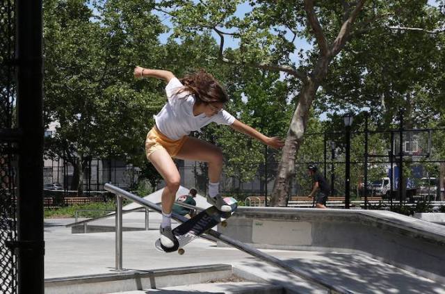 Rebellious teens come in all shapes, sizes, and modes of seriousness, and thus are reliably timeless as cinematic characters. The hook for this debut feature by Crystal Moselle is that it’s based on a popular Instagram account and uses the subjects of that account as actors mostly playing themselves, though the plot is contrived and even a bit elaborate. The world depicted is that of female skateboarders in Manhattan, most of whom enjoy very little in the way of family life or educational opportunities. Camille (Rachelle Vinberg), a dedicated skater living out on Long Island, falls into this milieu after injuring herself while skating and receiving a command from her worried Spanish-speaking mother (Elizabeth Rodriguez) that she can no longer partake of the pastime, so in order to avoid her mother’s gaze she takes the train into the city to do her thing.