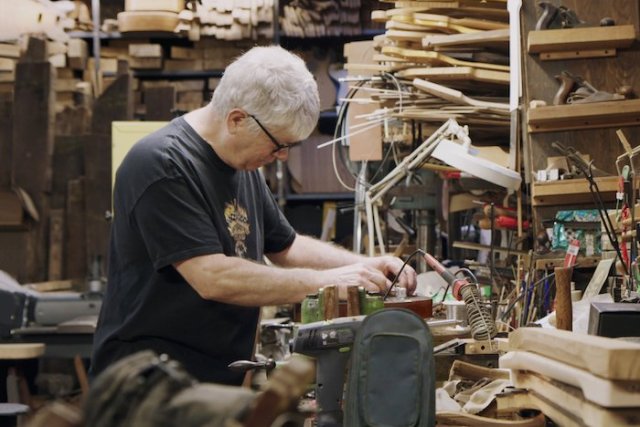 And while Mann wisely allows the detail of the craft to come through—how to improve resonance through resins, how burning improves resilience—he seems more interested in the idea of the shop, a commercial endeavor that still runs on its own steam and represents a calling that is as responsible for great art as the great art itself. When Nils Cline comes in to buy a guitar for his Wilco boss, Jeff Tweedy, he and Kelly bond over something inexplicable to the viewer but no less poignant, a flaw that makes one guitar tantalizing in its unexplored potential. The famous musicians who chat with Kelly are envious: they may have the glamorous life, but they don’t know themselves through their work as thoroughly as this master builder does. Carmine Street Guitars, both the movie and the store, represent heaven on earth.