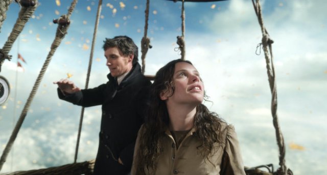 Harper beats the first hurdle by making one of the characters a daredevil entertainer. The year is 1862, and James Glaisher (Eddie Redmayne), a meteorologist, wants to prove a theory he has about predicting the weather, something his scholarly colleagues believe is impossible. In order to investigate his hypothesis he has to get high up in the atmosphere, where real weather patterns originate, and so hires a balloon. But since his university won’t fund the journey, because they think it’s all a folly, he brings on the aforementioned entertainer, Amelia Wren (Felicity Jones), who is experienced with balloons (Glaisher has never set foot in one) and, more significantly, can help subsidize the adventure by charging people to watch while she does her acrobatic act—complete with performing dog—as they cast off.