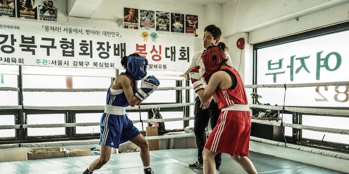 Jina channels her frustrations into boxing, a sport she takes up at the insistence of the owner and head trainer of the gym where she works as a janitor. Though they’re initially intrigued by her military training in hand-to-hand combat (“Why do South Koreans think North Koreans are all commandos,” she snarls), they also sense that her fighting spirit isn’t the same as that of the rich women who patronize their establishment to look cool. As a “North Korean refugee” Jina attracts some low-level media attention, and so she’s able to gain traction on a possible pro career, but the movie mostly hovers just above ground level and never falls into the usual sport movie cliches. It’s a character study that just happens to be about boxing, and while I wish Yun has been a bit bolder with the story, he lets his lead actor tell it, and she carries it off admirably.