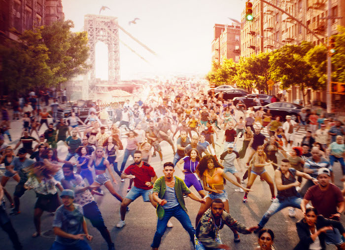 The “heights” refers to Washington Heights, the uptown Manhattan neighborhood that has been home to a large Latin community — both immigrant and native born — for decades, and its theme is one that Jane Jacobs would approve of and could use as an illustration of her urban studies theories: neighborhoods are the bedrock of a city, not only in terms of cultural viability but economic resilience as well. As with the play, the movie charts half a dozen storylines that only occasionally cross, thus freeing Miranda and writer Quiara Alegria Hudes from the burden of trying to make some kind of grand statement. Each story has its own statement, and keeping them intimate and simple is the key to their power. The character who holds it all together is Usnavi (Anthony Ramos), the owner of a bodega that’s smack in the middle of the Heights, thus not only giving him a vantage point from which to observe the various plot vectors, but the film a central location from which to launch many of its big production numbers. The long opening song, which is meant to put across the notion that living in the Heights means living with music constantly, is first reflected in the window of Usnavi’s bodega, as the morning crowd spontaneously morphs into a dancing, singing community. Even the inanimate objects join in the symphony.