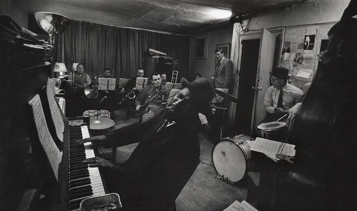 The notoriously difficult Smith was perhaps the most famous American photographer at the time and could have made a fortune on commissions, but turned down job after job in order to follow whatever non-lucrative muse caught his fancy, and, as the electrical works proved, he put everything into the jazz loft, though Fishko wisely doesn’t limit her study to him alone. The movie exists because of Smith, because of his photos and tapes, but since it was his desire to record what was happening, whether for posterity or his own artistic obsessions, Fishko is supplied with ample resources to delve into the New York jazz scene. Surviving jazz musicians who frequented the loft remember Smith as a mad workaholic, addicted to amphetamines, constantly taking and developing pictures (the chemicals he used and his peculiar methods in the dark room probably shortened his life), and inserting himself into the lives of musicians who accepted him as a fellow artist. Fishko also goes into the economics; how visiting jazz musicians would usually play gigs elsewhere in Manhattan and then schlep downtown to the loft where they’d spend the night jamming, drinking, and doing drugs. But it wasn’t just hedonism. Connections were made. Another main character in the movie is Hall Overton, the classical composer and teacher at Juilliard who also moved into the loft in 1954 and became a jazz aficionado. In return, he taught many jazz musicians theory on a private basis, including Thelonious Monk, who is considered one of the greatest jazz composers and arrangers of all time. There is also plenty of first-hand testimony speaking to the role, both creative and destructive, that drugs, mainly heroin, played in this milieu.