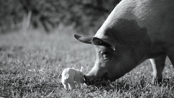 Perhaps it’s not a big deal, but Gunda has little in common with conventional nature documentaries. It treats its subjects as animals at the mercy of their own milieu without trying to help us understand how they feel, and yet we do feel for them. Most of the storyline, as it were, is about a sow raising her piglets. The movie starts just after she gives birth, and while the newborns are cute their juxtaposition to their larger parent makes for queasy viewing (it ain’t Babe, babe). It’s all slobbery wetness and sucking and sometimes interpig violence, which may be play, but under Kossakovsky’s lens you wonder. At one point, the sow tramples on the runt of the litter and the viewer isn’t completely sure if the piglet survives. But Kossakovsky doesn’t linger on the notion, and thus the story takes on a life of its own, continuing through the weaning weeks to adolescence before the inevitable takes place—this is a farm, after all—a process the director handles indirectly but with no loss of tragic implication.