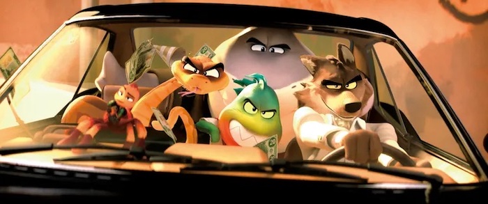 Dreamworks reportedly hopes to develop this animated feature into a franchise, but so much of it is pastiche that it might be difficult to pass off as original. The premise is that the heroes are not only “bad guys” in movie parlance, but animals that tend to have a negative image in real life: snakes, piranha, tarantulas, sharks. The head of this motley crew of criminals is a wolf voiced by Sam Rockwell at his sleaziest, and while wolves have generally been rehabilitated in recent decades through the services of environmental groups (as have sharks, even though they still kill people), the movie appropriates the old Hollywood cliche of wolves, meaning guys on the make, especially when it comes to their approach to women.