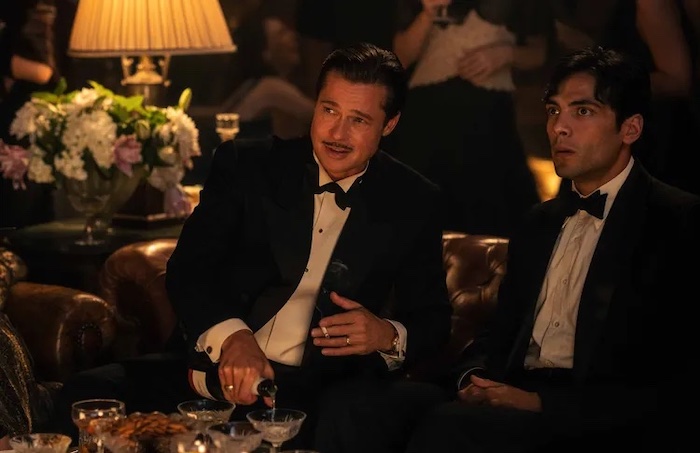 Since it’s already been deemed a box office flop we can assume that isn’t going to happen, but the excess on display was always meant to be the movie’s main appeal. Opening with a wild and wildly designed 1926 party in the desert where everyone in Hollywood does actual mountains of cocaine and participates in copious orgies, Babylon immediately takes its title way too literally, and while annals of the age attest to the debauchery that’s depicted, Chazelle fails to make it feel historically credible. Perhaps because Brad Pitt and Margot Robbie essentially play versions of their most publicly popular personalities (Pitt falls back on his cool, self-deprecating shtick), it’s difficult to get a sense of what is different about the 1920s compared to the 2020s except that there are no cell phones. For sure, the cars aren’t really any bigger. The movie is episodic in structure as it charts the course of the studio system through the late silent years, over the speed bump of the advent of talkies, and on into the era of increasing moral exhaustion and media overkill. Our tour guide is Manny Torres (Diego Calva), a Mexican kid who starts at the bottom as a go-getting gofer and gradually works his way up in the system to become a producer of some success. In his rise to the top he helps the ambitious ingenue Nellie LaRoy (Robbie) achieve her dreams of stardom at the going price, while the leading man of the silents, Jack Conrad (Pitt), sees his own fortunes plummet once he’s forced to speak for himself.