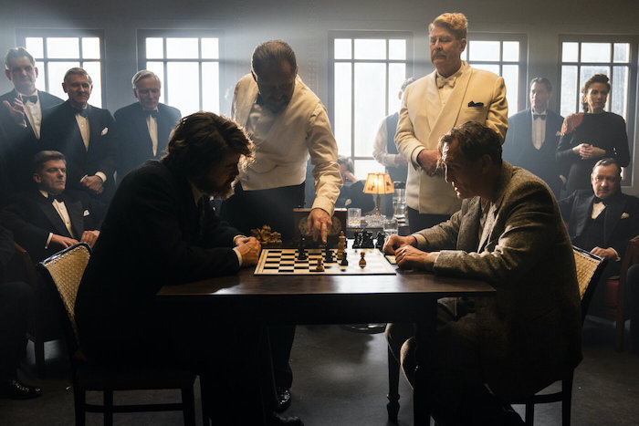 Film adaptations of fiction that plays with form and structure offer unique challenges, and while I haven’t read the Stefan Zweig bestseller on which Chess Story is based, there are enough odd, disconcerting turns to the development to make me assume that director Philipp Stölzl is trying to mimic some sort of stylistic gambit offered by the novelist. The story moves back-and-forth between two settings and times: A Vienna hotel following the Anschluss, and a passenger ship making its way from Rotterdam to New York right after the end of the war. The protagonist, Josef Bartok (Oliver Masucci), exudes opposing states of mind in the twin storylines. In the former, he’s headstrong and arrogant, a rich hedonist who, at least in the beginning, doesn’t take the approaching Nazi takeover seriously enough, even as mobs of sympathizers attack his chauffeur-driven car on the way to a ritzy soiree. In the latter, he’s an utterly broken man who appears to have lost everything, including his mind.