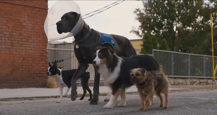 As talking animal movies go, Strays isn’t very innovative visually, and its premise that the kind of typical dog behavior that humans find funny or gross is for dogs a point of pride is difficult to sustain for 90 minutes, but it does manage to entertain through its voice cast’s enthusiasm. Though not a big Will Ferrell fan, I think he’s perfect as the scruffy leading mutt, Reggie, who is too much of a callow canine to realize his layabout owner, Doug (Will Forte), hates him. As Doug continually tries to abandon Reggie, the dog just keeps coming back until Doug gets truly serious and dumps him in the city where his sense of direction is useless. Still convinced that Doug loves him, Reggie hooks up with the stray Boston Terrier Bug (Jamie Foxx), who quickly disabuses him about the reality of human warmth. Reggie is of the opinion that “a dog’s purpose is to make humans happy,” while Bug’s more cynical take is that Reggie is just a codependent sap and the life of a stray is where it’s at.