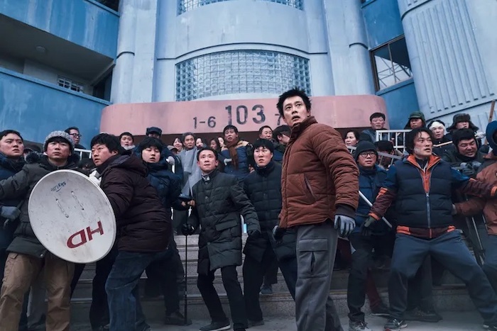However clever the humor (fortified by the martial music on the soundtrack) or the mystery sub-plot of Yeong-tak’s shady provenance as a resident, the viewer knows exactly where the story is headed and all Um can really do to add variety is ratchet up the ensuing violence and intensify the bad behavior. Had Um stuck with his opening gambit of showing how Korea’s predatory real estate boom has made the country less secure, he might have created something more provocative. Concrete Utopia is a well-made film, but it rarely transcends its urge to appall the viewer with atrocious behavior. A better Korean movie of this ilk is 2022’s Dream Palace, about a new condo resident who fights against the collective for what she believes are her own specific rights as a homeowner. That movie doesn’t require a catastrophe to show how self-interest can corrupt, and stars the invaluable Kim Sun-young, who plays the head of the residents’ council in Concrete Utopia. In fact, some of the council members say they recently moved to the Hwang Gung apartments from a nearby condo called Dream Palace, which is obviously inferior in status—after all, it collapsed. As with apartments, it’s impossible not to compare movies that cover the same ground.