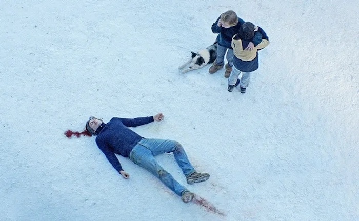 Justine Triet’s acclaimed courtroom drama is not a whodunnit in the classic sense, but its basic appeal is the same. The mystery is whether the dead person, a French academic, was murdered by his wife, a German writer who, while not rich, was widely published. This dynamic, we are reminded again and again, seemed to cause her husband considerable anguish, since he has been struggling for years just to complete one novel. The resulting friction is illustrated blatantly in the first scene. As the wife, Sandra (Sandra Hüller), answers a graduate student’s questions about her work in the couple’s chalet in Grenoble, the husband, Samuel (Samuel Theis), blasts music upstairs, making the interview impossible. Sometime later, the couple’s visually impaired son, Daniel (Milo Machado Graner), discovers his father’s dead body in the blood-splattered snow after having apparently fallen from the chalet’s third-story window. The question becomes: Did he jump or was he pushed?