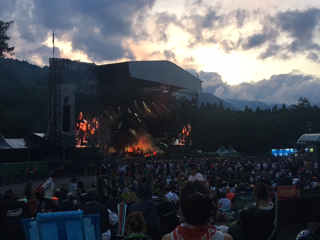 Another crucial time is between 3 and 5 in the afternoon, since that’s when the audience starts flagging. The general energy level drops precipitously, and you tend to see a lot of people nodding out on the ground in weird positions, or sleeping comfortably in their camp chairs. Speaking of which, when I first started coming to Fuji after it moved permanently to Naeba, nobody brought camp chairs, which were, and still are, nominally prohibited. Then, around 2010, people started bringing them in increasing numbers, causing problems for crowd control purposes. Now they are ubiquitous, and while the organizers say please don’t, they’ve caved and now pretty much allow camp chairs in designated areas, but nobody pays attention.