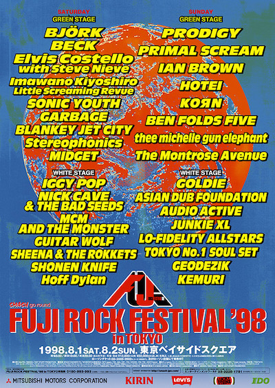 I wrote an overview for the Japan Times of the history of the Fuji Rock Festival to commemorate its 25th anniversary at the Naeba ski resort. In it I mentioned the second edition of the festival, which was held in Tokyo. I wrote a review of that event for the JT but it is not available on the JT website so I’m posting it here, warts and all. I’ve already posted my review of Fuji Rock 1999, the first one to be held at Naeba, here, which I also mentioned in the article.