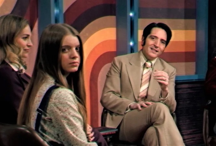 For their first movie set in the U.S., Australian horror maven-brothers Cameron and Colin Cairnes hit on a novel idea that would seem to require a sensibility they weren’t born to. Late Night with the Devil is essentially a real-time rendering of an episode of a fictional American late-night TV talk show from the 70s. The fact that the Cairnes nailed the tone of that particular genre of television in its time makes one wonder just how ubiquitous it was globally, but in any case, they’re helped enormously by actor David Dastmalchian, who plays the troubled, ambitious host, Jack Delroy, a man whose only desire is to knock Johnny Carson off the late-night throne, if even for one ratings cycle. Delroy’s show, “Night Owls with Jack Delroy,” we are told during a well-written preface narrated over a montage of shocking news stories from that era, was once considered edgy, but due to personal tragedy and other unforeseen developments, Delroy was never able to capitalize on the initial buzz, and some five years into the show it has slipped badly and is in danger of being cancelled, so during sweeps week in 1977, which happens to coincide with Halloween, he goes for broke with a live broadcast featuring a girl who is supposedly possessed by the devil.