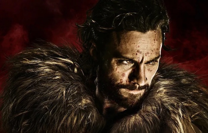 The Sony wing of the MCU—the Spider-verse, to be more precise—continues its trudge toward the next blockbuster Spidey installment with the origin story of one of Peter Parker’s nemeses, who is positioned here as a hero in his own right; and that makes sense within the purview of the classic Marvel m.o. One thing that early fans of the comic books appreciated about Stan Lee’s vision was that both heroes and villains operated within complicated personality paradigms, unlike DC Comics characters, who lived in a decidedly Manichean world. Kraven is Sergei Kravinoff (Aaron Taylor-Johnson), the son of Russian crime boss Nikolai Kravinoff (Russell Crowe), who teaches both Sergei and his other son by a different mother, Dmitri (Fred Hechinger), how to hunt big game, skills that, in Sergei’s case, are enhanced to super powers after he is attacked by a lion in Africa and treated with a special potion by a local woman named Calypso (Ariana DeBose), who later becomes a high-powered London-based lawyer. As a source idea it isn’t much more imaginative than being bitten by a radioactive spider, but what’s really risible is that these super powers are never delineated beyond the usual bulging muscles and ability to run very fast without getting worn out.
