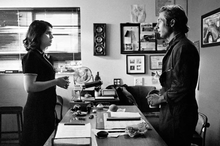 Which isn’t to say Fremont is precious or pretentious. It’s well written and funny, but it seems to avoid matters that would make it more insightful or edifying. When Donya’s self-regarding therapist (Gregg Turkington) tries to get more out of her about her background she gives up the intelligence that “I just wanted to get out of there,” without betraying much in the way of desperation—all she wants from the doctor is a sleeping pill prescription—and when a compatriot mentions that his daughter, “a traitor,” is still back in Afghanistan you wait fruitlessly for more. Donya works at a fortune cookie factory in the Bay Area for a Chinese-American family whose voluble patriarch (Eddie Tang) is always mentioning how important their work is in imparting philosophical tidbits. When Donya herself is promoted to the job of writing the fortunes, she thinks first of herself and uses the fortune cookies to troll for dates. Eventually, she gets a nibble, but from someone who lives far away and thus has to borrow a friend’s car to get there. On the way, the car breaks down and she meets a mechanic, Daniel (Jeremy Allen White, probably before his breakout role in The Bear), who is every bit as disaffected as she is. Though not love at first sight, there’s enough curiosity there to justify a return trip to the garage.